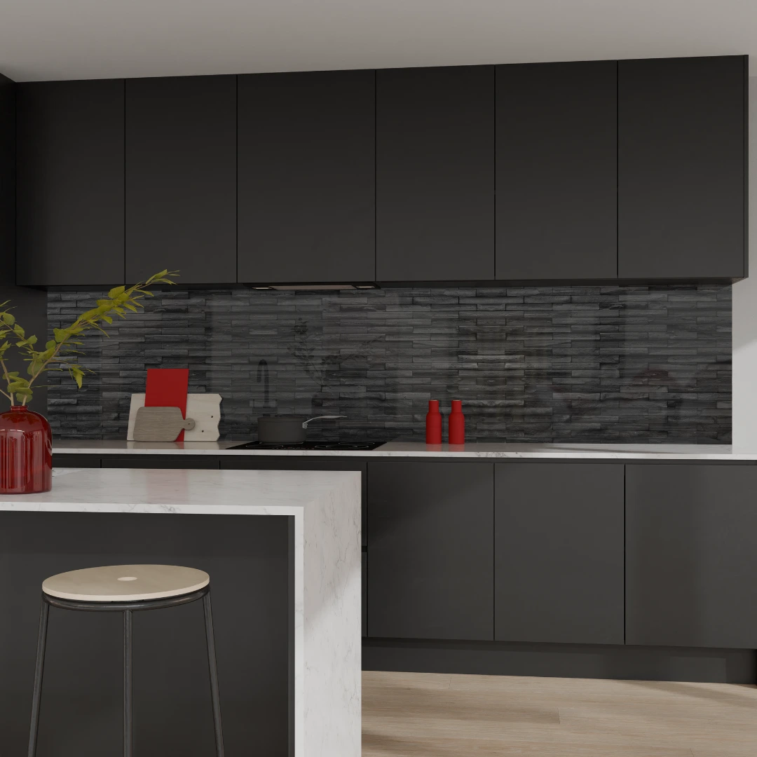 Unsere Küchenrückwände bestehen aus 6 mm starkem ESG-Sicherheitsglas, das besonders widerstandsfähig gegen Stöße und hohe Temperaturen ist.